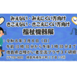 写真は徳島駅前の通路で、育てる会のメンバーとボランティアさんが青いスタッフジャンパーを着て募金を呼び掛けている様子。ユーザーは椅子に座っていて、その足元に盲導犬は待機している。